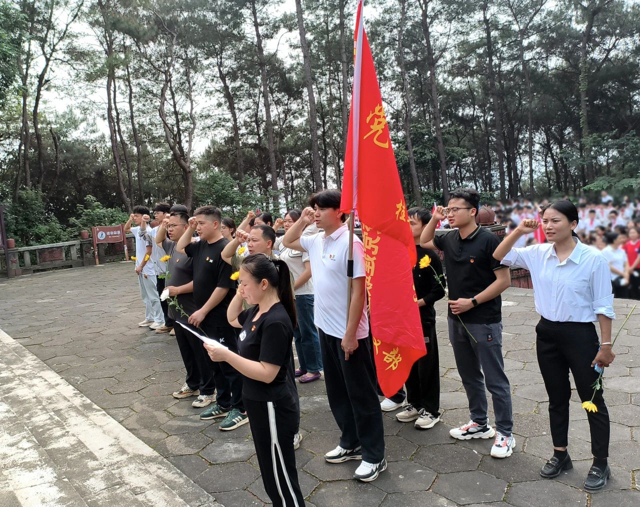 我校全体党员、共青团员代表向长眠在这里的烈士敬献鲜花,并绕碑一圈,以表哀思和尊敬。